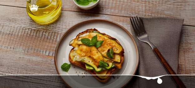 (Italiano) Crostone con scamorza affumicata, zucchine e menta