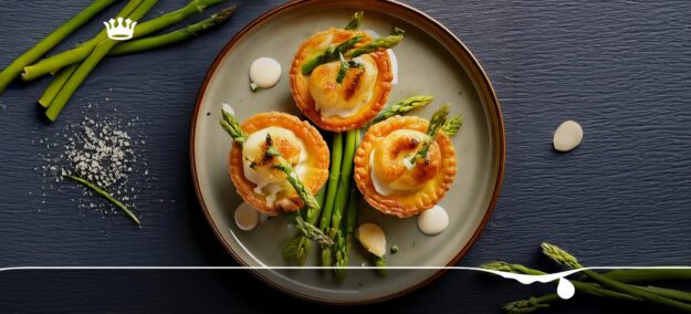 (Italiano) Cestini di sfoglia con mozzarella e asparagi