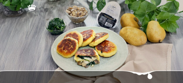 (Italiano) Potato cake con provola, spinaci e champignon