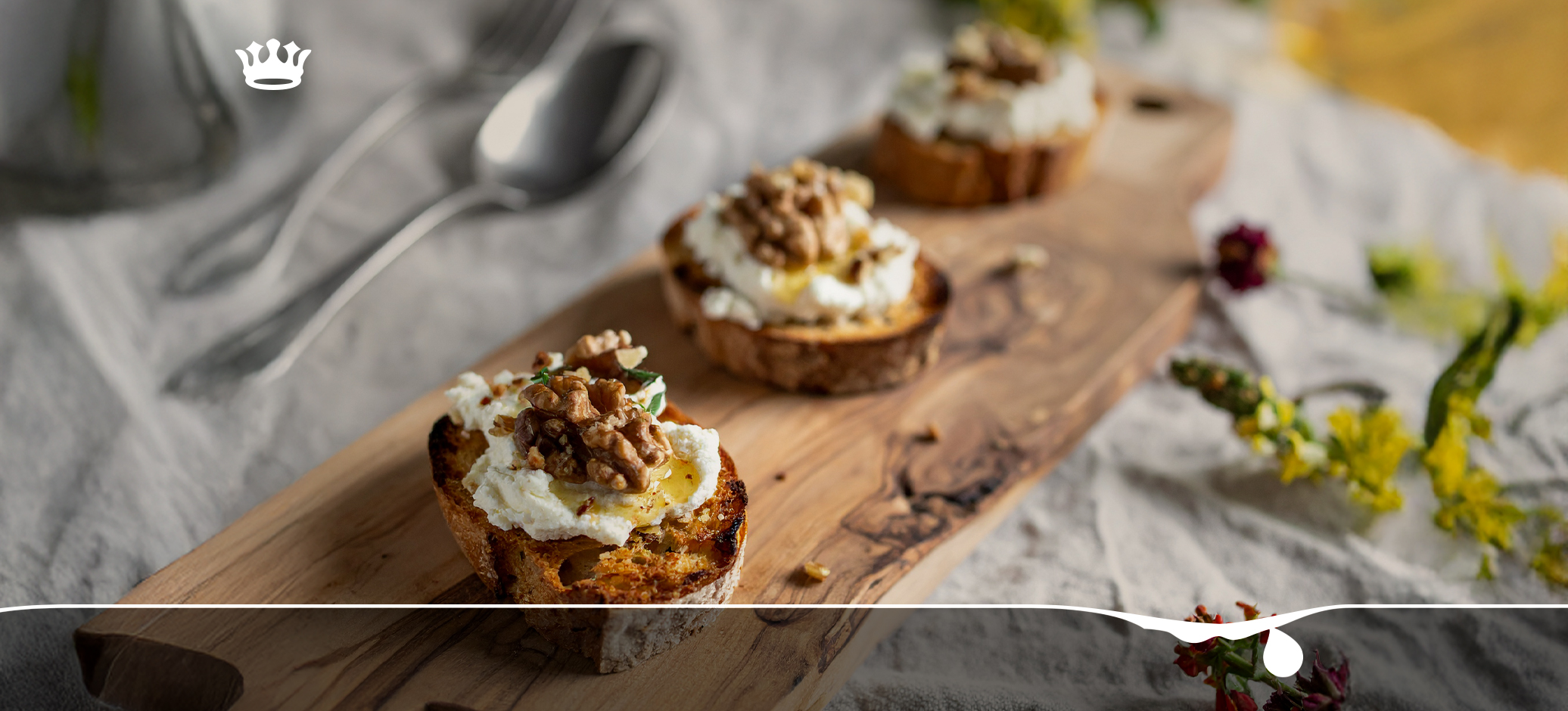(Italiano) Crostini rustici con ricotta, miele e noci
