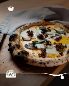 Pizza autunnale con Provola Affumicata Nobili, crema di zucca, salsiccia e porcini